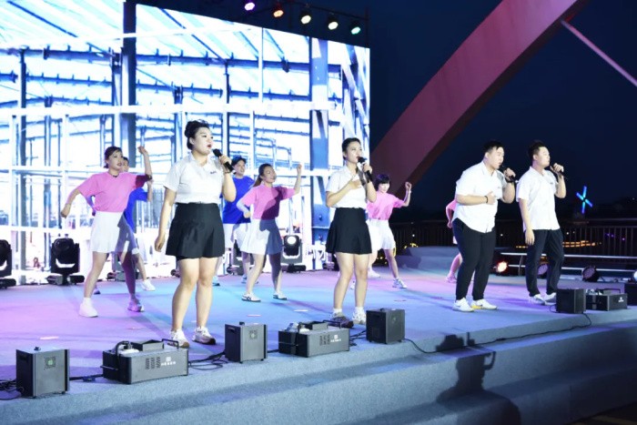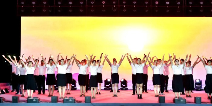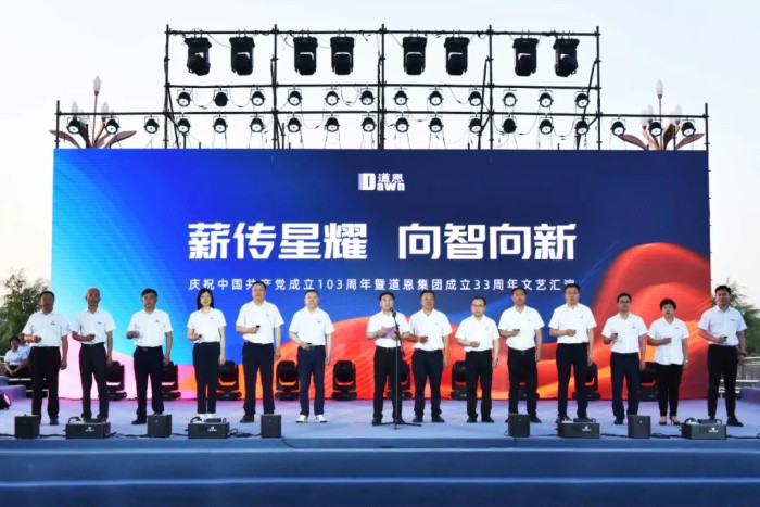 6月28日,走進龍口市道恩新材料科技產(chǎn)業(yè)園,彩旗招展,一派喜慶氛圍。當天晚上,道恩人歡聚道恩橋,隆重舉行以“薪傳星耀 向智向新”為主題的慶祝中國共產(chǎn)黨成立103周年暨道恩集團成立33周年文藝匯演。